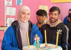 At TRC Blažuj, we celebrated JRS’s 45th anniversary through an activity called “Blooming Together.” Participants wrote their wishes on paper leaves, ranging from expressions of gratitude to JRS, hopes for peace and safety, to personal dreams of success and a better future. Some expressed the desire to make their parents proud in the country they will call home, while others sent messages of peace for Sudan. The paper leaves were then placed on a symbolic communal tree, creating a visual representation of shared hopes and dreams. The celebration concluded with a birthday cake, and more than forty people joined the joyful gathering, enjoying each other’s company and a sense of community.